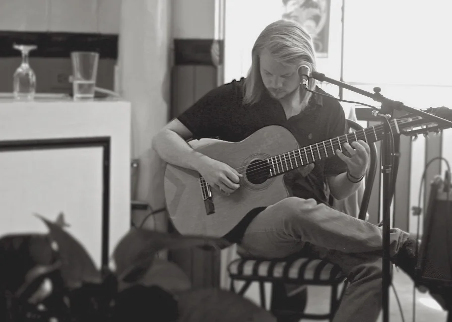 His live performances go beyond typical solo acoustic set. Blending original songs, instrumental pieces, jazz improvisation, traditional and modern folk, and live-looping, Morgan creates a full, dynamic sound that feels both polished and spontaneous. Each show is shaped by musical instinct, technical skill, and a genuine love of the craft.